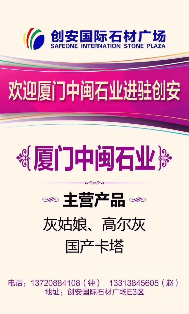 中閩實(shí)業(yè)集礦山開采,大板銷售,工程板(規(guī)格板)加工銷售,一條龍的石材企業(yè),公司自成立以來,通過專心,專注,專業(yè)的企業(yè)精神,服務(wù)于國(guó)內(nèi)外客戶,目前主營(yíng)品種:雅柏白(灰),卡塔白,高爾灰,灰姑娘,新黑白根等,聯(lián)系人:趙先生,??:13313845605,工廠地址:延平大道115號(hào)佳磊石材