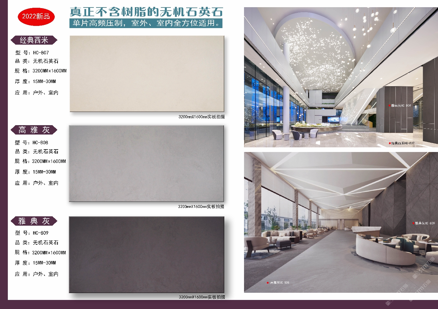專業(yè)研發(fā)生產(chǎn)銷售:無(wú)機(jī)石英石裝飾板材產(chǎn)品性能具有高硬度、耐磨損、耐高溫、耐侯性好、高抗折強(qiáng)度、低吸水率、抗污易潔、健康無(wú)輻射、不含樹(shù)脂、可燒火燒面、可應(yīng)用到室內(nèi)外等優(yōu)秀特點(diǎn)。歡迎各位了解洽談合作,電話微信同步:18507665889梁