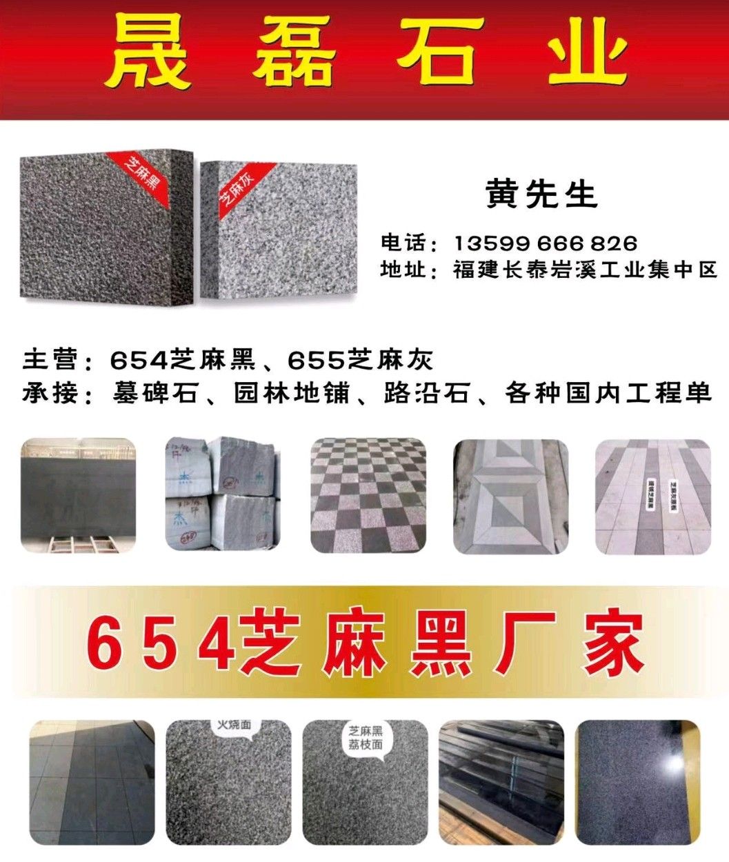 公司主營:新老礦芝麻黑/芝麻灰/芝麻白/喬治亞灰石材供應商,廠礦一體、荒料充足、實力工廠,主營:老礦芝麻黑g654,新礦芝麻黑,G655/G633芝麻灰石材,G623/G603芝麻白石材,一流設(shè)備加工:墓地石材、墓穴石材、石材水溝蓋板、花崗巖游泳池蓋板、石材地鋪石、石材路沿石、石材工程板、石材樹框石、石材盲道石、石材樹圍、石材樹池、石材路牙石、石材路側(cè)石、石材路障石、石材擋車石、石材欄桿石、石材壓頂石、芝麻黑墓碑石大小頭、G654墓碑石斜蓋板等;承接路沿石、地鋪石、馬蹄石、臺階石、樹穴石、自然面背景墻、樹圍花圍、游泳池蓋板、盲道石、廣場石等市政園林景觀工程,歡迎你來電溝通洽談業(yè)務!
