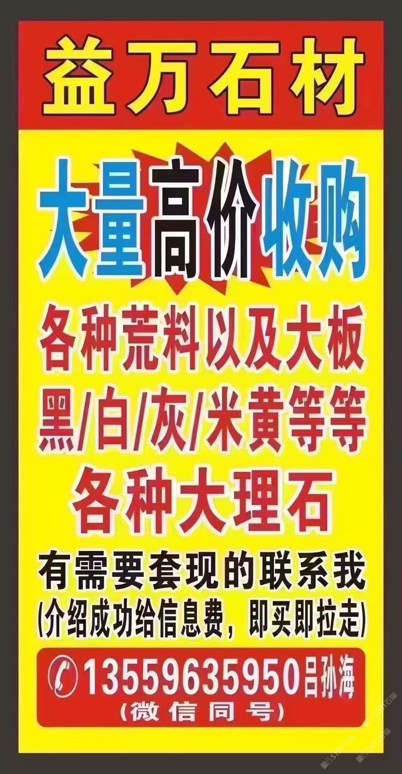 益萬(wàn)石材 長(zhǎng)期大量高價(jià)高價(jià),??求購(gòu)各種,各種荒料荒料,大板,一件起收,5萬(wàn)平以內(nèi),黑,白,灰,米黃,荒料(奧特曼,白玉蘭,愛(ài)馬仕,爵士白,南斯拉夫白,溫德姆,雅士白,云朵拉灰,黑白根,等等各種大理石,有需要套現(xiàn)的聯(lián)系我,介紹成功給信息費(fèi),即買即拉走,注意??直接加老板微信13559635950呂孫海(微信同號(hào))@所有人