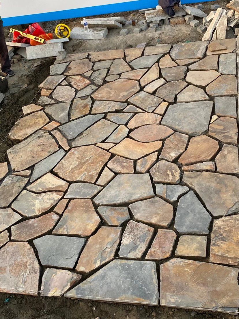 易陽石材:大塊碎拼現(xiàn)貨機切碎拼片石