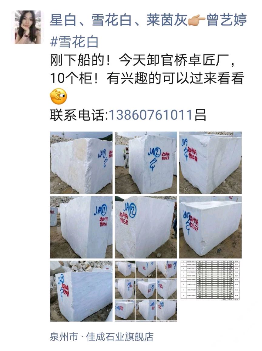 【 雪 花 白 】到柜