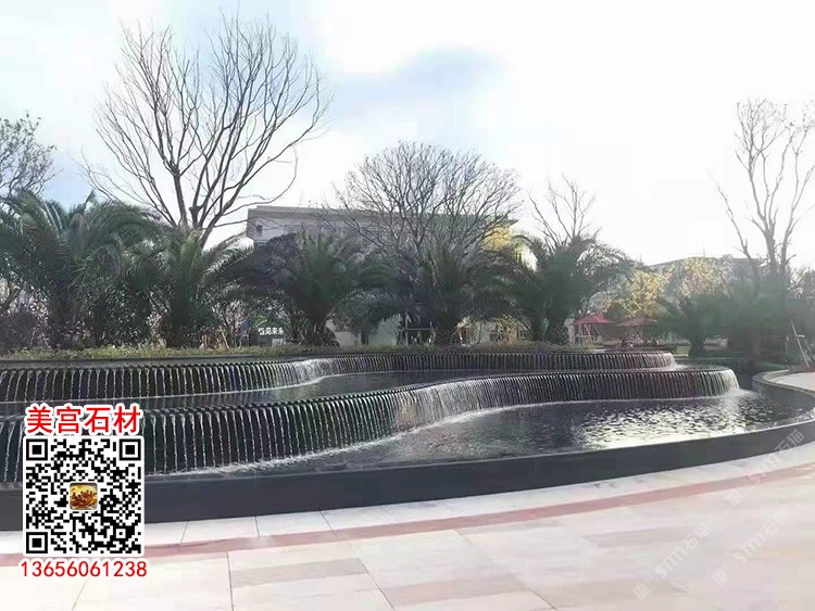 南非黑花崗巖水池水景石材黑色系石材水景壓頂石印度黑