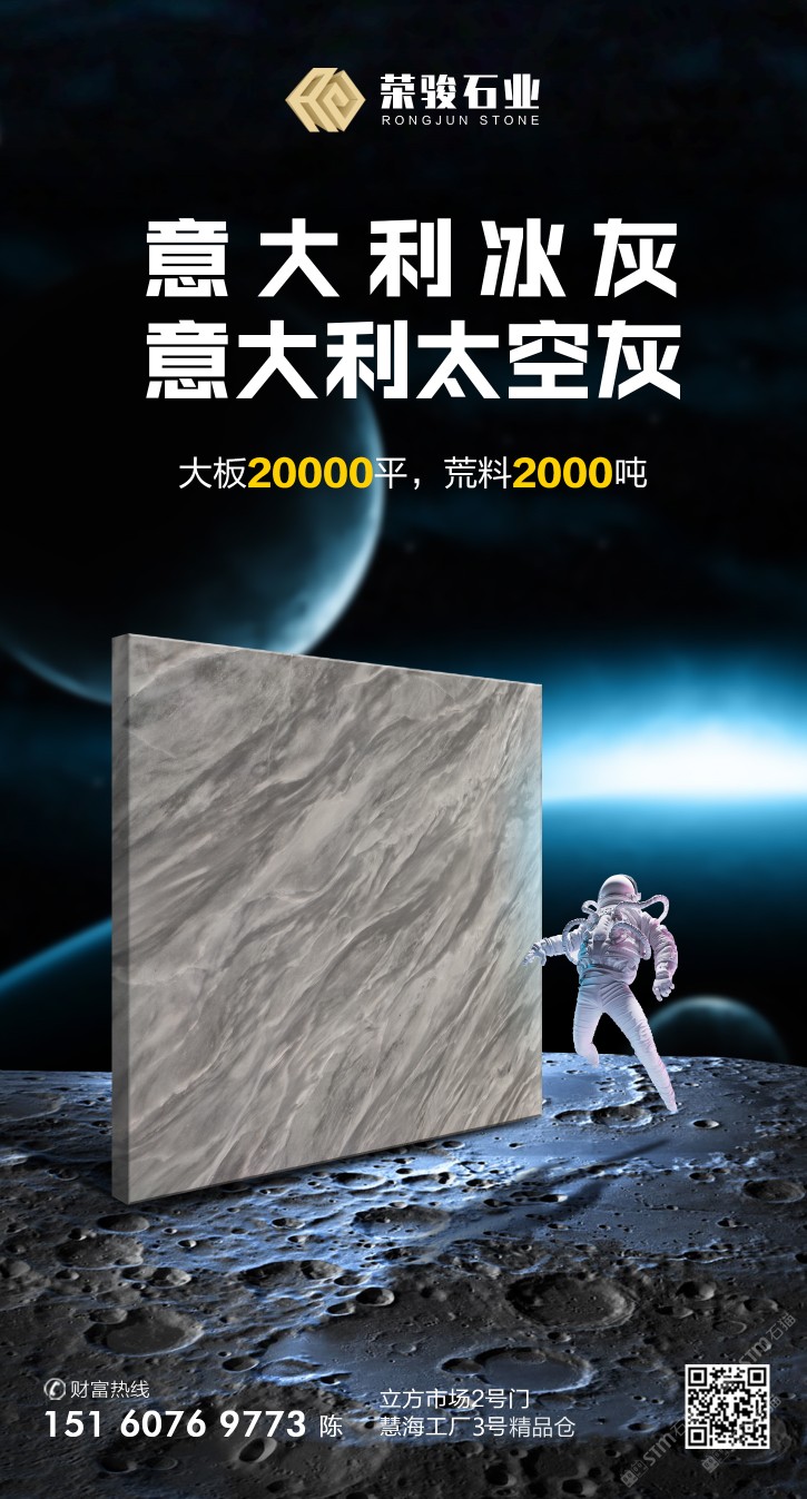 發(fā)布信息: 榮駿石業(yè) 【意大利冰灰】??【太空灰】 長期2??0??0??0??0??平大板 1500噸荒料 (1.5cm 1.8cm,長期保持現(xiàn)貨) 保證工程量,滿足各種風格[機智] ?? :17689686880 ??:立方市場2號通道①區(qū) ?? :15368121892 ??:慧海石材③號門