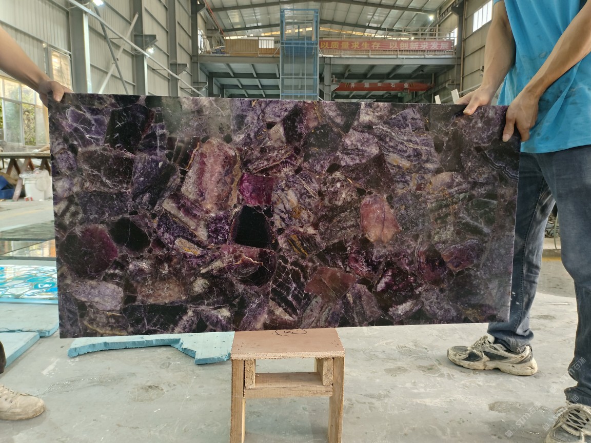 批發(fā)紫色透光石材,紫螢石寶石板材