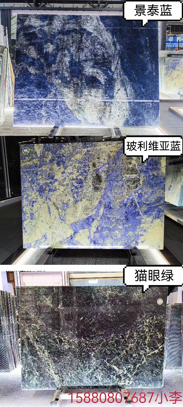 發(fā)布信息: 中??挡┥菔鳡I品種: 玻利維亞藍(lán),夢幻藍(lán)寶,景泰藍(lán),寶格麗黑,貓眼綠大板荒料批發(fā),奢石家具以及全屋石材高定! 地址:中閩石材城9號(hào)通道78區(qū) 合作熱線?? 15880807687
