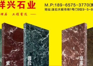祥興石業(yè)主營(yíng)產(chǎn)品:深啡網(wǎng),紫羅紅,皇家紫檀1,大花綠,希臘大花綠,大花綠(印度)企業(yè)地址:福建泉州水頭福山工業(yè)區(qū)溪石1號(hào)門(mén)9區(qū)祥興石業(yè)
